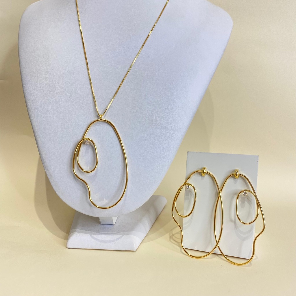 Perfeito para quem busca uma joia super tendência e refinada, este conjunto realça qualquer look com um toque de exclusividade. Eleve seu visual com essa combinação única e elegante!